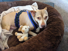 We bought a walking harness to help take some pressure off his knees. Once his left knee healed, it was time for Surgery #3 for the right knee. That should have been enough for any dog to deal with and enough for us as well. But it was just the beginning.