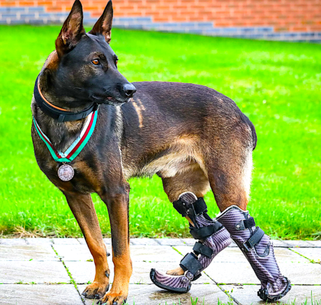 Happily, however, the hero dog has since made a full recovery from his surgery and has become the first U.K. Military Working Dog to be fitted with custom-made prosthetic limbs.
