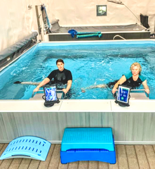 Ilaria (left) training in pool with resistance and underwater treadmill.