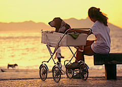 The pet stroller – This is my absolute favorite. It has been the biggest help to me, in ways almost too numerous to mention. I used to take my old dog Red out for a few short walks a day, but on the weekends when the weather was nice, we liked to take our other dog Jack to run around the beach. Although she was small enough to carry even little dogs get heavy after a short while, so the stroller was the perfect solution. She would walk for a few minutes, then I would put her in the stroller so we could keep going. It meant she was always included in our outings, have the chance to get some exercise, but not overdo it. Whether you have a senior dog who can’t walk as far as he used to or a dog recovering from illness or surgery and is only allowed 5 minute walks, you can’t find anything better than a pet stroller.