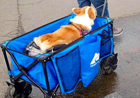 Last week, we saw a Facebook post that really caught our attention – a Corgi named Daisy competing in K9 Nose Work. What jumped out was that this Corgi had degenerative myelopathy (DM) and was in a wheelchair, and her mom wheeled her around in a wagon, going from station to station to compete. In their last competition a few weeks ago, this dynamic duo came in 9th overall!