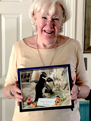 Enrique’s passing hit the St. Louis and penguin-loving community hard, but none more than his St. Louis Zoo caretakers. Clare, one of the zookeepers, contacted Thera-Paw (the boot makers) with an odd request: to memorialize Enrique, could mini-sized penguin booties be made and turned into keychains for all of Enrique’s caretakers? The Thera-Paw staff were determined to make this happen. Martha was the Thera-Paw seamstress that had made Enrique’s therapeutic boots. Martha had grown fond of the old bird; so much so that Thera-Paw had asked the Zoo for a photo of Enrique to celebrate Martha’s birthday. Now, in honor of Enrique, Martha was more than happy to return the favor.
