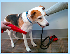 Resistance band tugs as an example of therapeutic exercises – courtesy of L. Edge-Hughes at FourLeg Rehab |