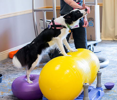 The efficacy of physical rehabilitation in dogs with osteoarthritis has been proven in multiple scientific studies. In addition to the contribution physical activity can have on weight management, it can also help maintain range of motion, muscle mass, and comfort. Consistent, tolerable levels of activity are most beneficial. If a pet is able to increase their stamina by gradually increasing the duration of their activity, this is ideal. Multiple short walks may be better than one long walk. If high-impact activities such as fetch or playing with other pets are expected, a ‘warm-up’ period of walking may decrease risk of injury. Avoiding excessive high impact activity is important, so try to avoid the ‘weekend-warrior’ type of exercise (i.e. really long hikes on inconsistent basis).