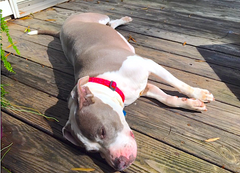 Cora, the pitbull girl with a beautiful pink nose in need of a wagon