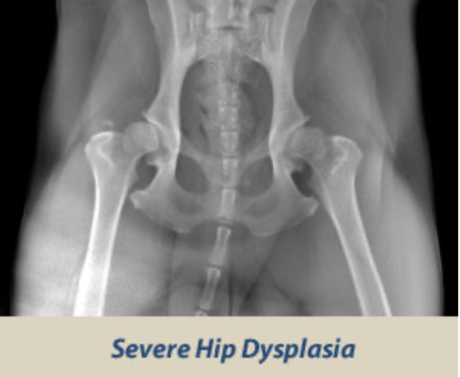 Once osteoarthritis is present on a radiograph, dysplastic changes are irreversible and usually continue to progress over time. If a dysplastic dog has secondary arthritis and pain, most owners elect to first treat their dog with medical management. The key is weight control and exercise. Studies have shown that up to 76% of severely dysplastic dogs with arthritis secondary to Hip Dysplasia are able to function and live comfortable, quality lives with conservative management. With weight control, the goal is to prevent the dog from becoming overweight to reduce mechanical stresses applied to the hip joints. In general terms, the ribs should be easily palpated and there should be an indentation in front of the pelvic wings (waistline).