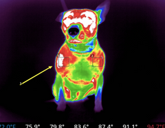 We became interested in thermography when one of our patients had it performed to evaluate a biceps tendon injury at one of their other providers of care. It was fascinating to see how much it could reveal, without sedation, without much time taken. This patient was a highly active Border Collie whose mental acuity was beginning to surpass her body’s ability to recover. The thermography proved a great diagnostic tool, helping to pin point which soft tissue group was inflamed, which led to more targeted physical rehabilitation, cold laser and on our side, acupuncture and chiropractic treatment. When used as follow up, it was able to show improvement from treatment over the course of time.