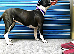 The attached pictures show two views of a patient, Suzy-Q, who had a long standing right forelimb lameness. It had been difficult to parse out whether the cause was the caudal cervical spine, shoulder or elbow. Suzy-Q had incredibly high drive, was very stoic and her intense musculature made things more difficult to assess. It was through our thermography that we could see it was the shoulder causing the troubles and focus our treatment on this area in particular, while watching out for signs of compensation that would predictably arise over time.