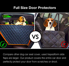 HAMMOCK DESIGN WITH SIDE FLAPS - With extra-tall side flaps, your pet safe is sure to stay cradled and secure even when the vehicle breaks.  It also protects your pet from open car windows and protects your vehicle doors from drool and scratches.
