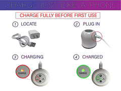 - EASY TO USE AND PORTABLE – Place head of device lightly on the area to be treated. Press start button to begin 15-minute massager treatment. Device turns off automatically when finished. Please read all instructions thoroughly before first use