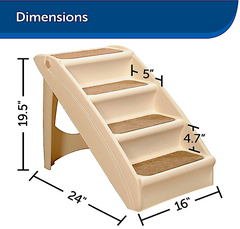 • Dimensions: Stair dimensions are 24 inch. L x 16 inch. W x 19.5 inch. H; individual step measurements are 5 inch. D x 13 inch. W x 4.7 in. H