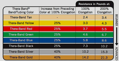 Yellow, Red, and Green offer from mild to moderate resistance.
